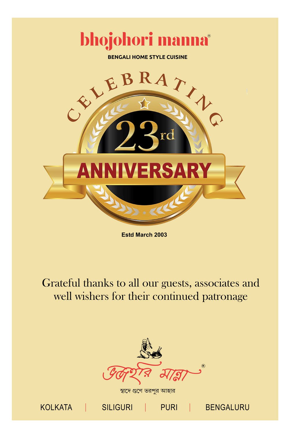 We at #BhojohoriManna are now pleased to inform you that the dust covers on the sofas will go off and our Behala-James Long Sarani branch will be opening on Friday 26th July from 12 noon.